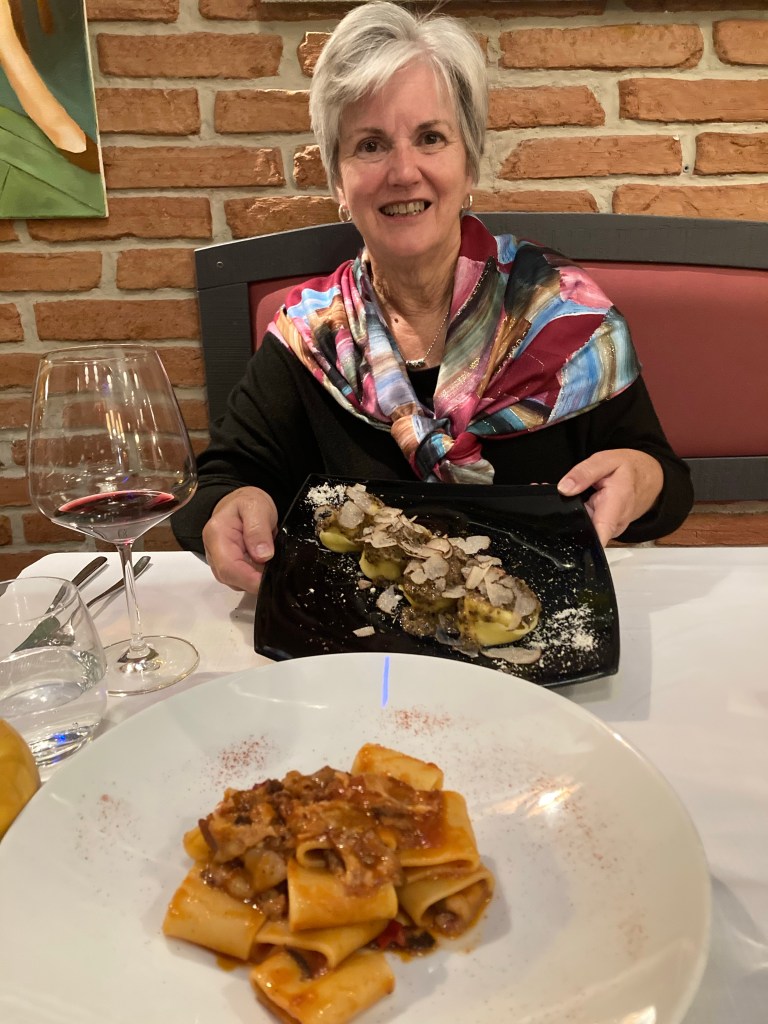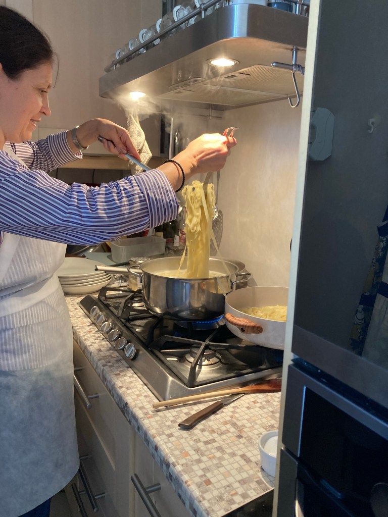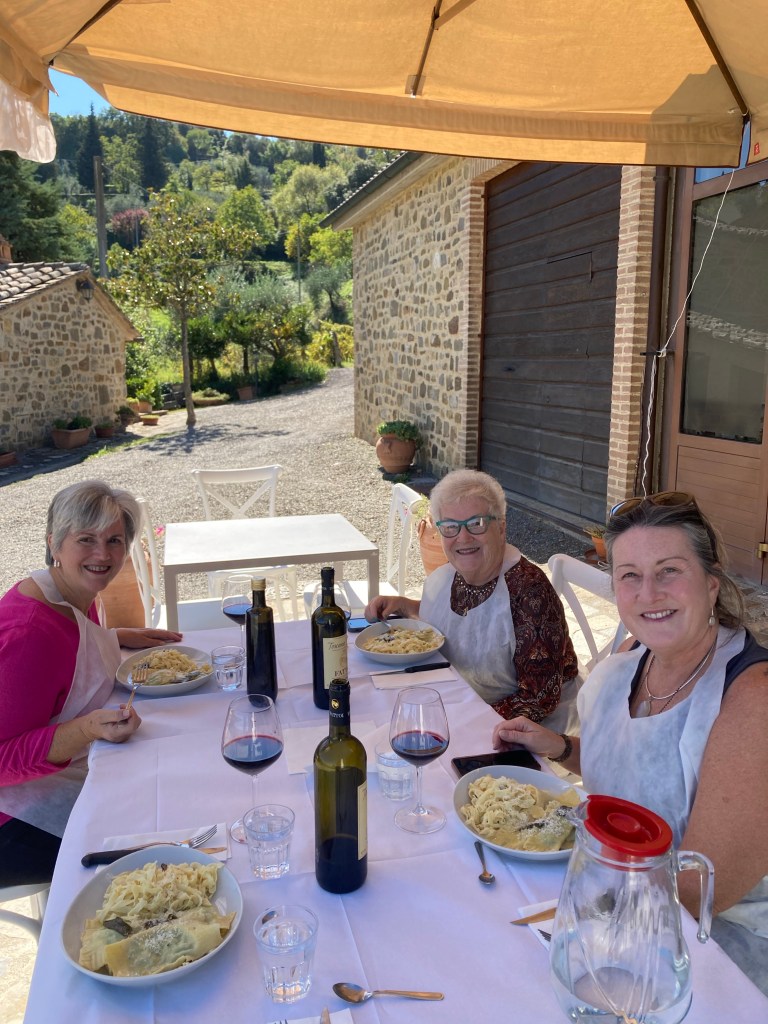 I must be getting old because it only took me about 10 minutes to refocus and move on to enjoying our cooking class. I mostly watched Becky have a great time, and did get my hands dirty as well. The reward for our efforts was a lunch of hand made tagliatelle pasta with spinach ravioli, followed by Crostata and the best tiramisu ever made.