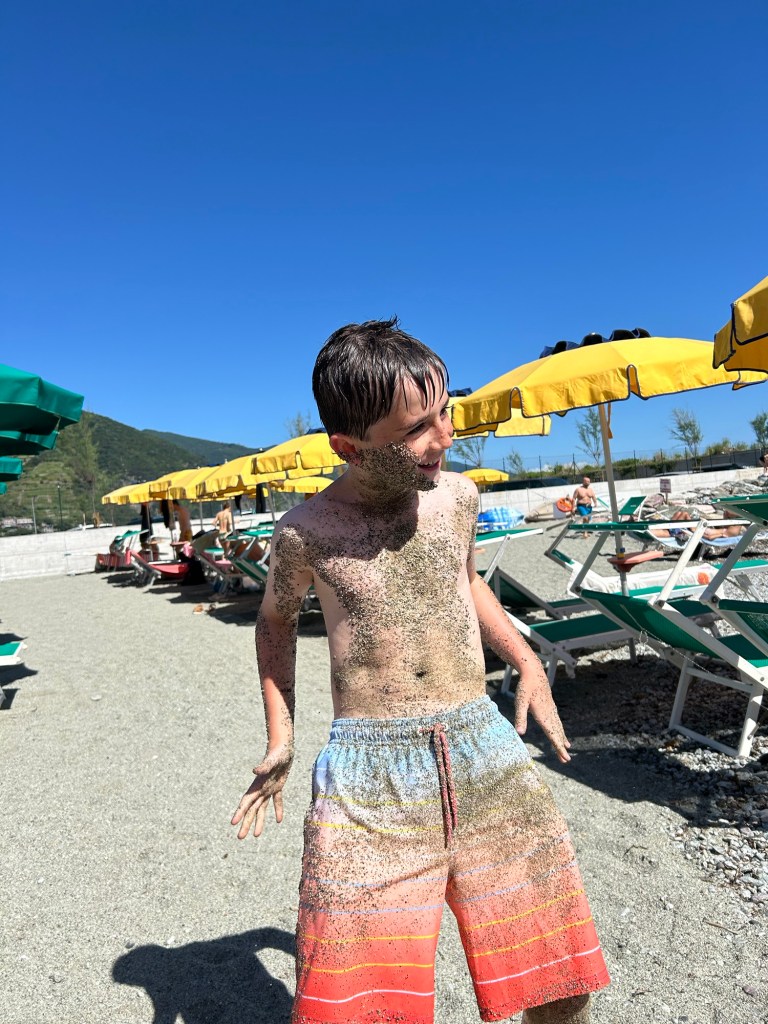 We returned to Monterosso, and since the seas were too rough for the planned kayak excursion, we settled for more beach time