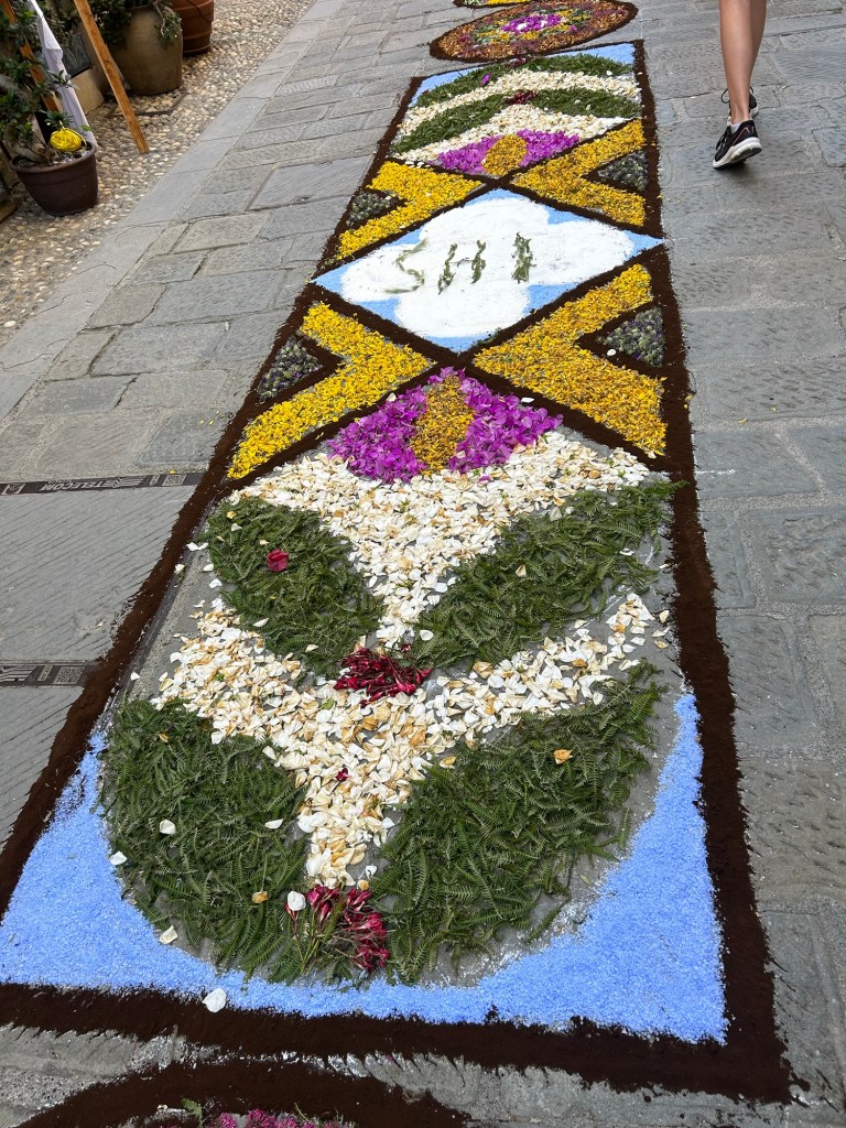 A special treat was waiting for us when we returned to Monterosso. While we were gone the city streets had been decorated with flowers, grains, and colored sand for the Corpus Domini Festival