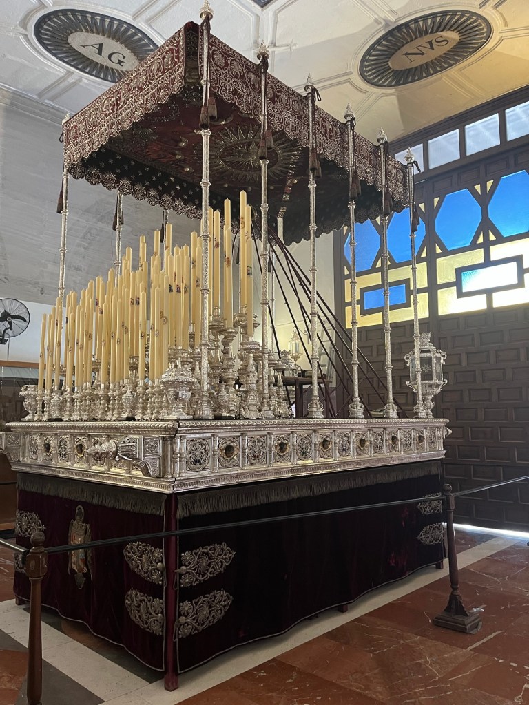 There are also signs that Semana Santa, or Holy Week, is approaching. We stopped into a church and they had their float that will be carried in the upcoming parades, and we surmised The Madonna will be placed in the float for the events.